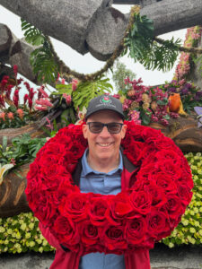 While Paul’s obsession with the Rose Parade began in the early 1970’s, enjoying his father’s pancake breakfast watching the Parade, it blossomed at Cal Poly. He spent five years on the student float-building team. Here, he learned the most important lesson in design: Deadlines! The Parade begins at 8:00 AM sharp on January 1st, and the flowers don’t care if you have had a nap.