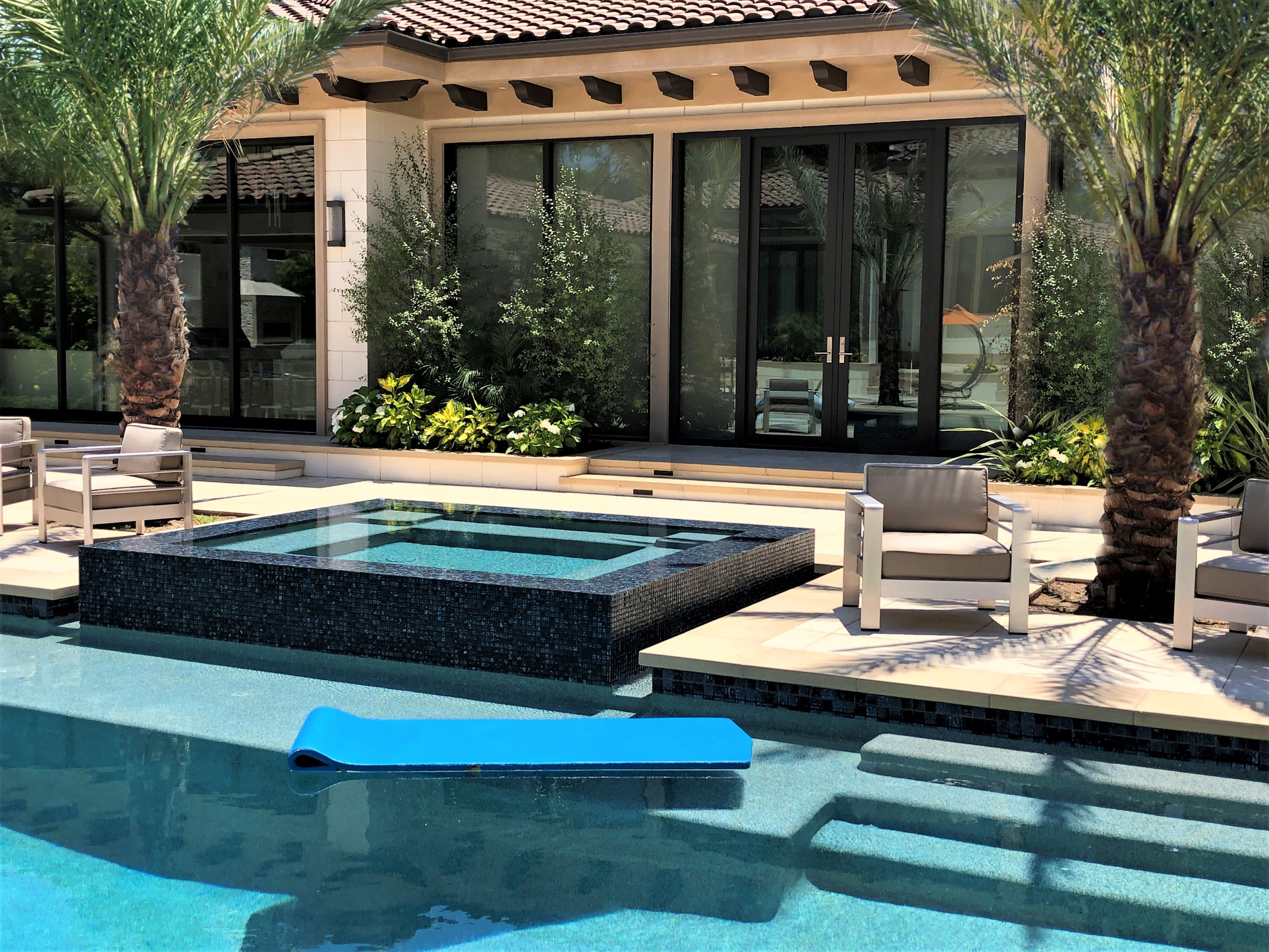 Inside the desirable Chandler Estates, this property was designed as an escape from the everyday rush. The moment you enter, lush greenery guides you through a landscape full of thoughtful details. Palms and low‑maintenance grasses shape a modern Mediterranean garden designed for effortless luxury and timeless serenity.