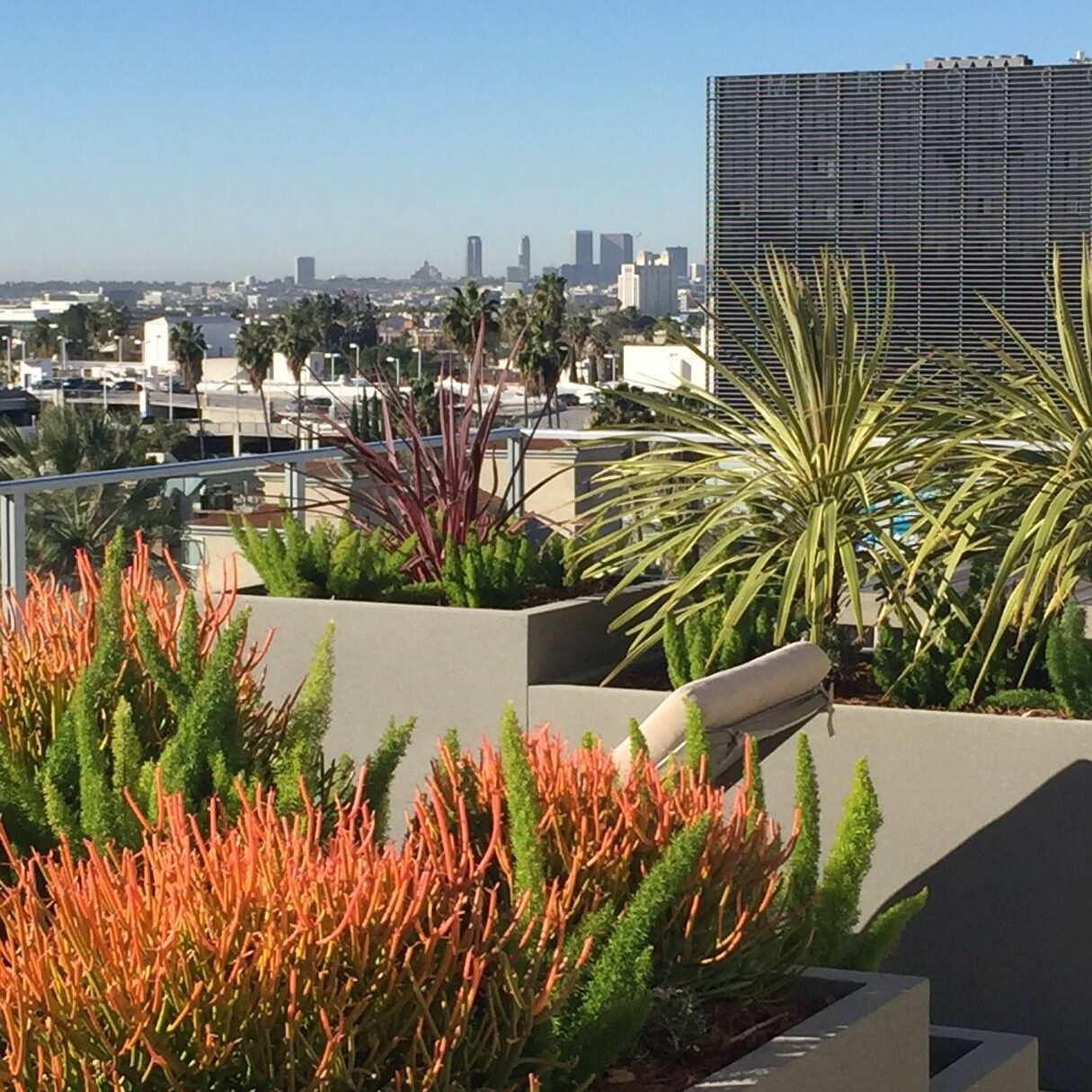 In collaboration with the developer, our design team helped to create dramatic roof top resort pool and sunning terrace with 360 views of Hollywood Hills, Private resident club lounge with seating and fireplace, Romantic courtyard with BBQ grills.