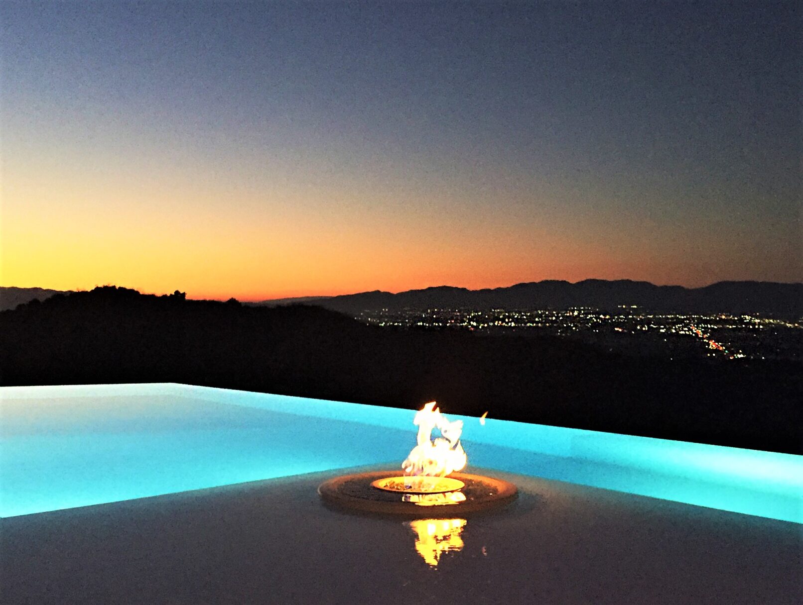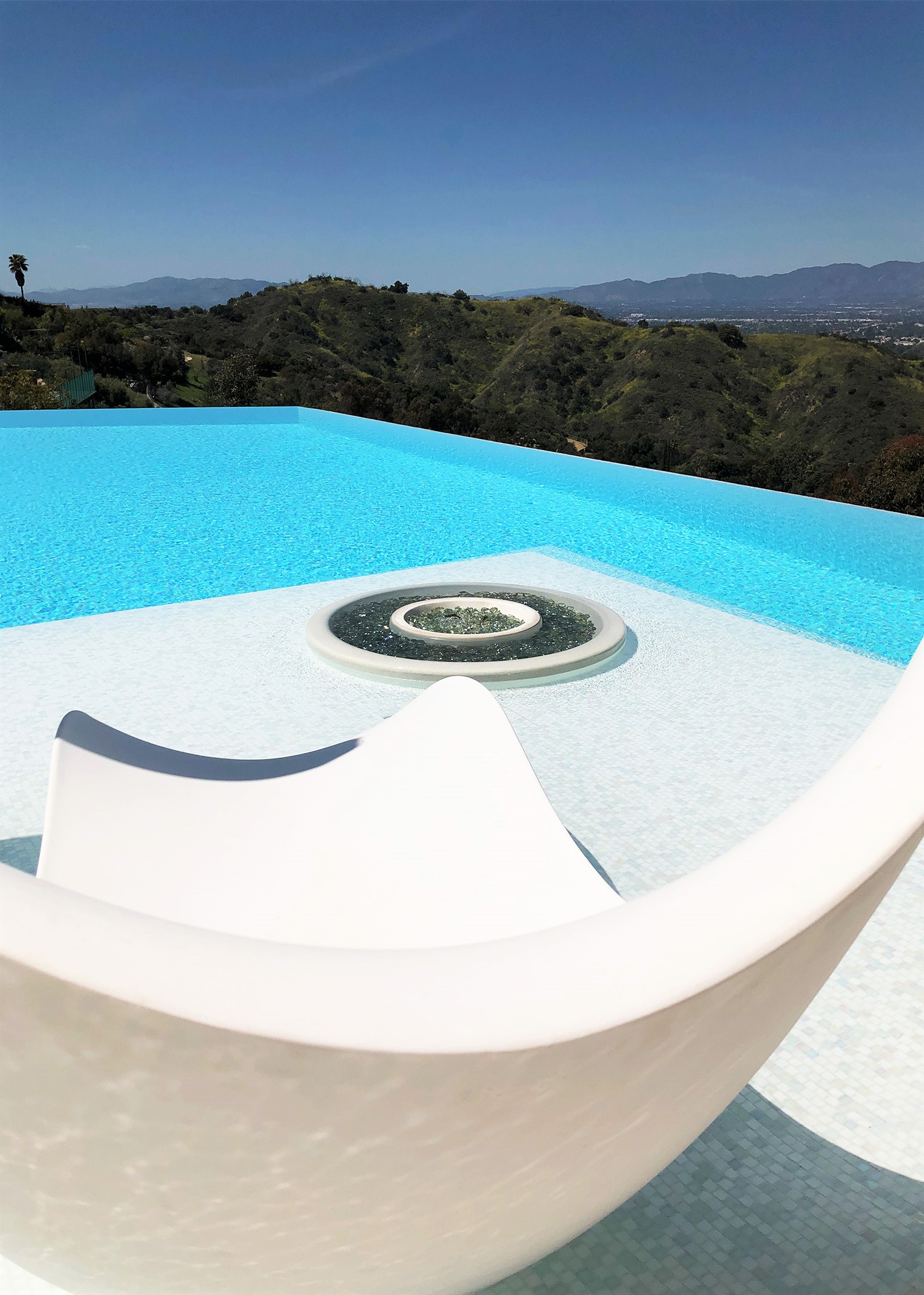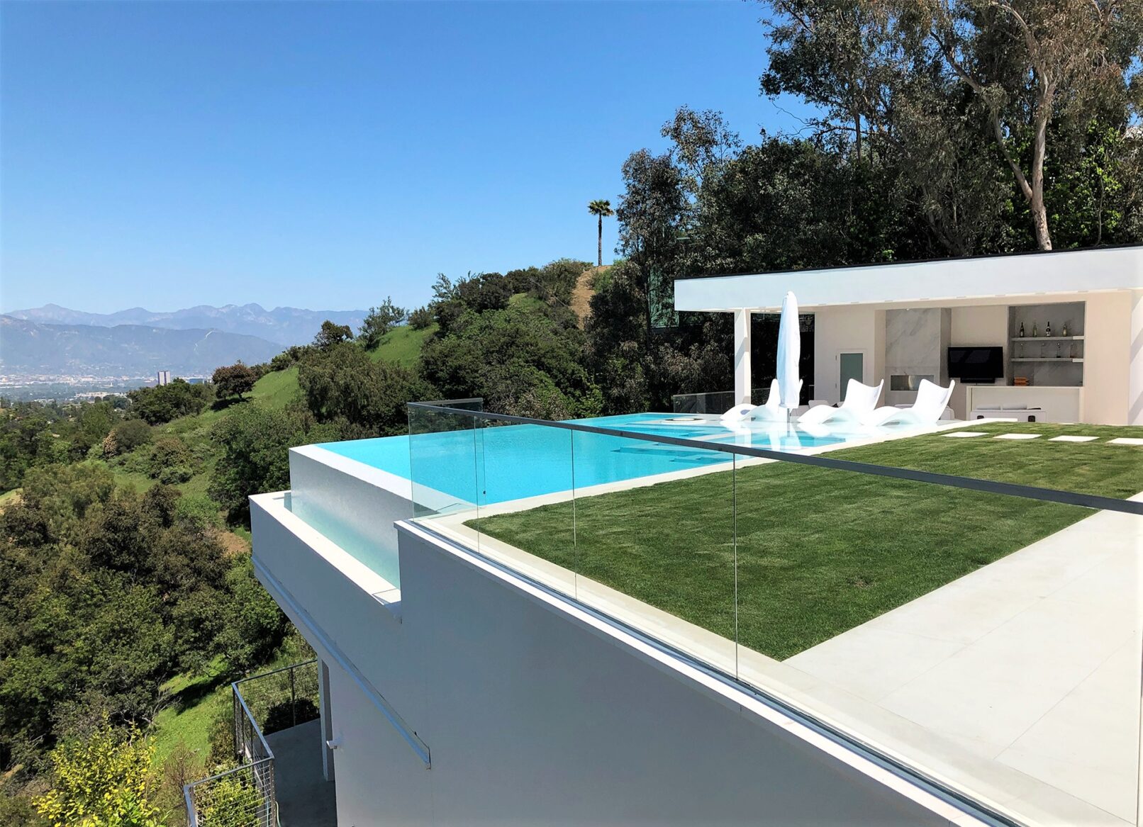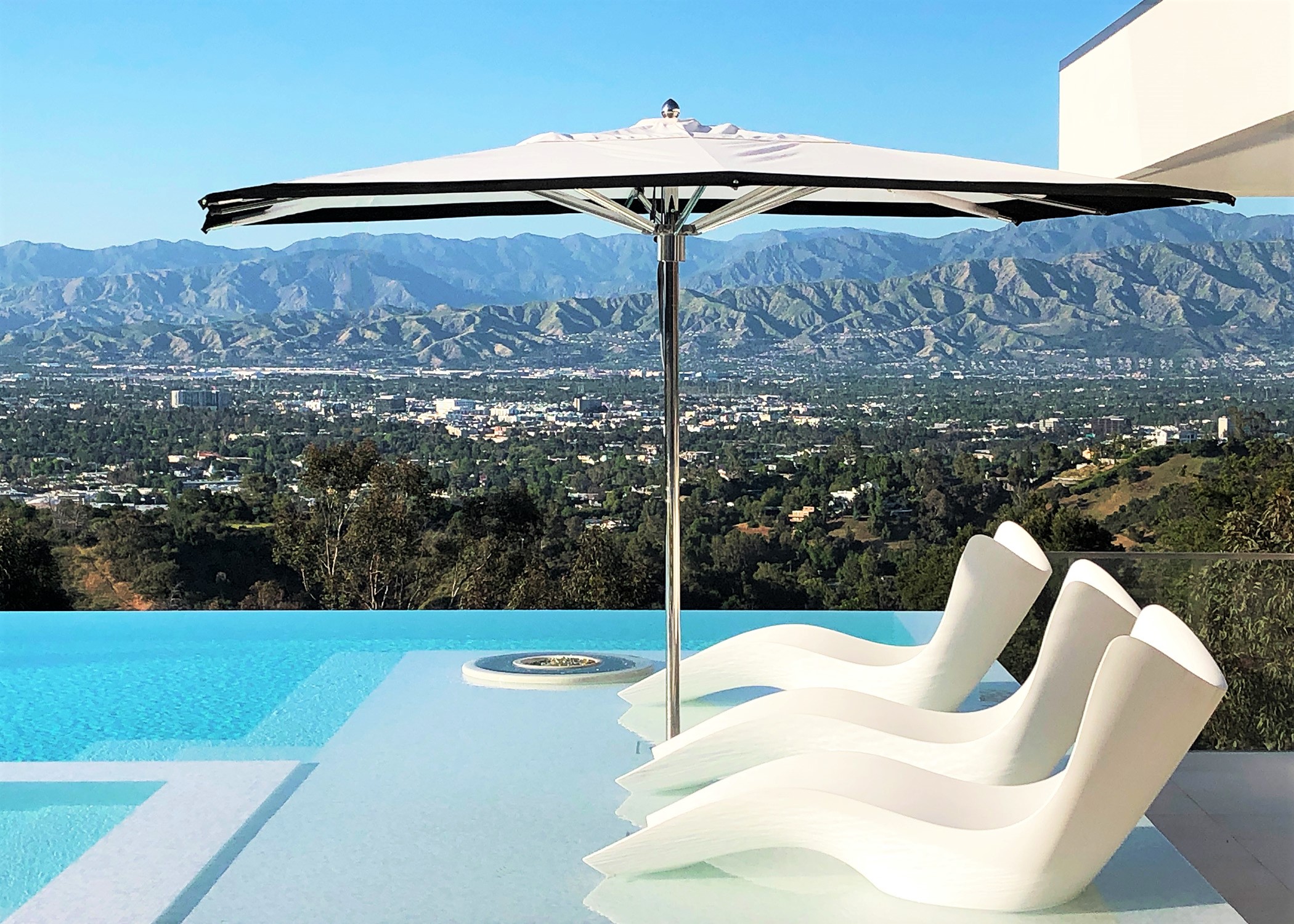 Perched above Mulholland Drive, this modern oasis overlooks the Los Angeles skyline with an infinity pool that spills into the horizon. Lemon, orange, and lime trees line the terraces, and a fire‑lit pool creates a retreat under the California sun. Step inside, and the panoramic views follow, blurring the line between indoors and outdoors.