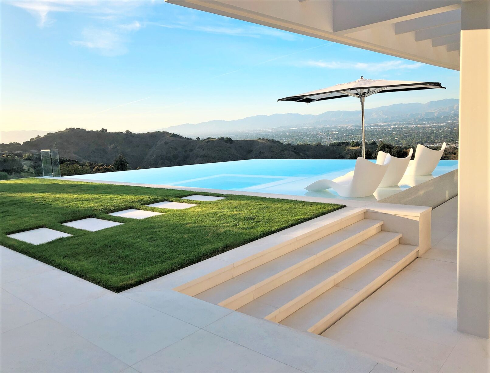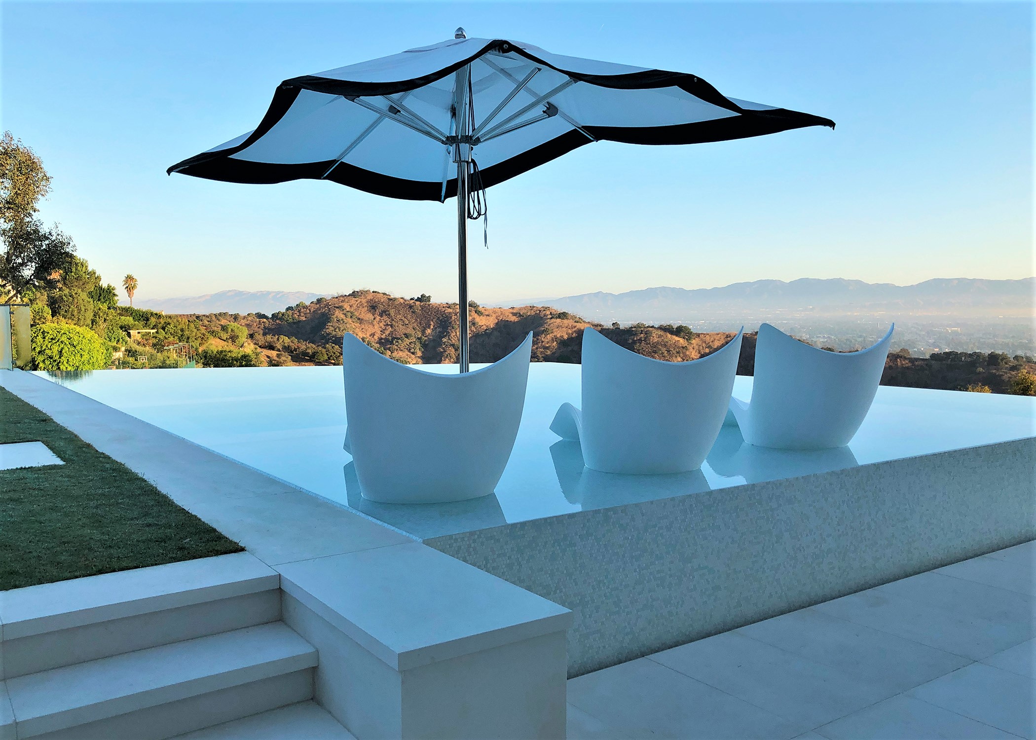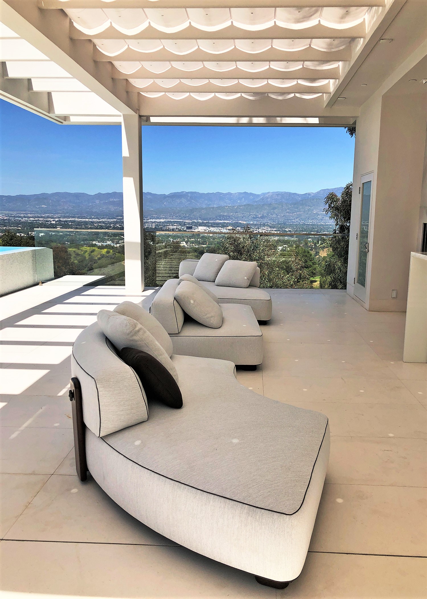Perched above Mulholland Drive, this modern oasis overlooks the Los Angeles skyline with an infinity pool that spills into the horizon. Lemon, orange, and lime trees line the terraces, and a fire‑lit pool creates a retreat under the California sun. Step inside, and the panoramic views follow, blurring the line between indoors and outdoors.