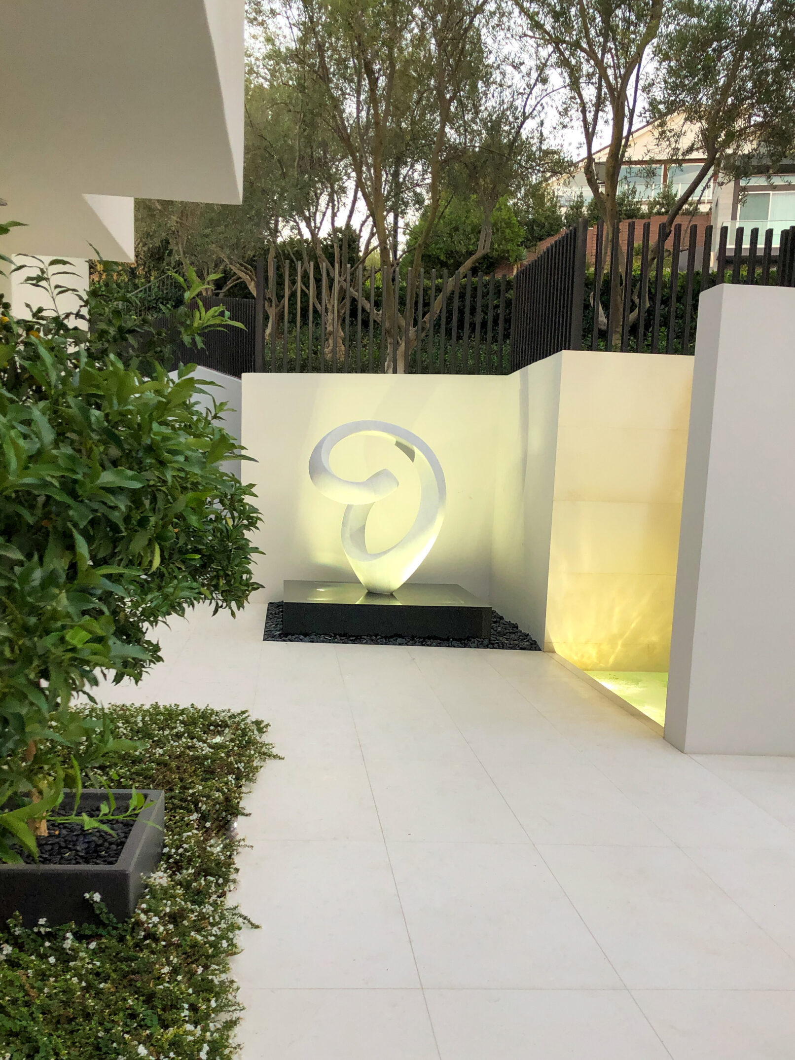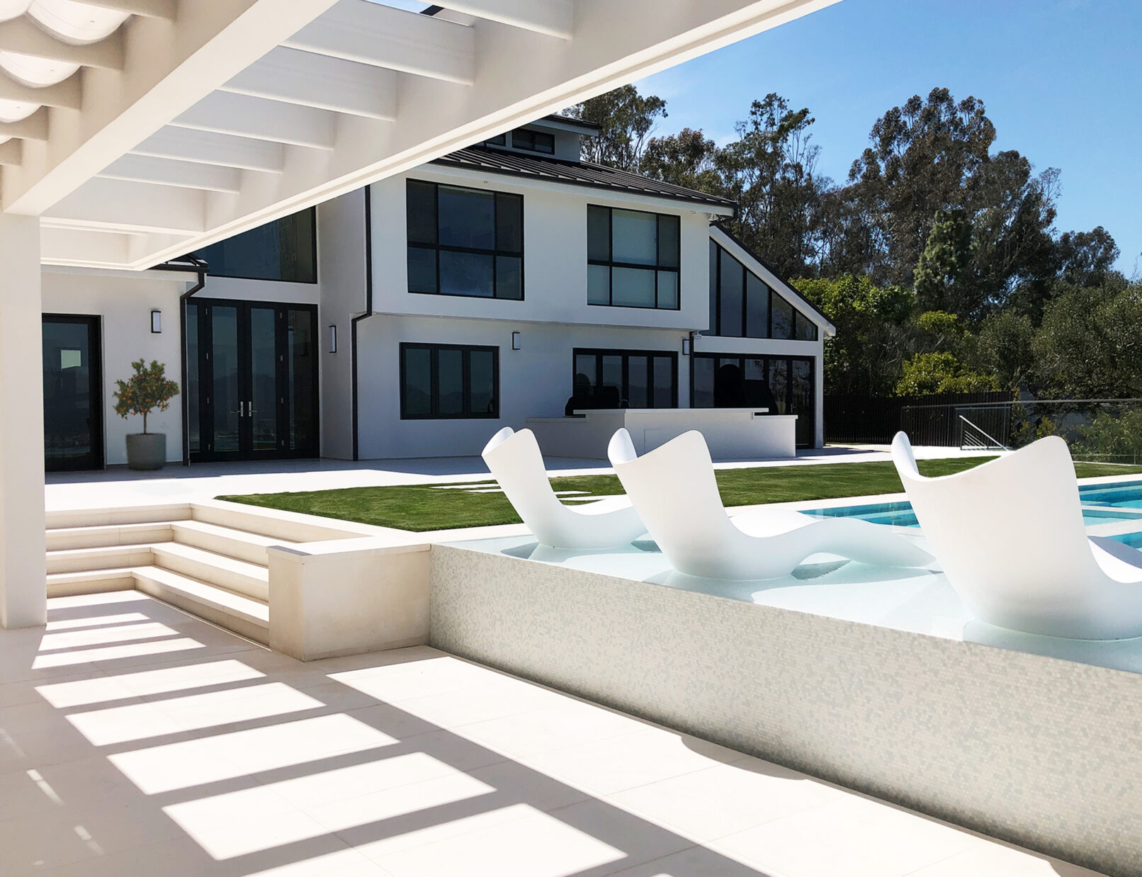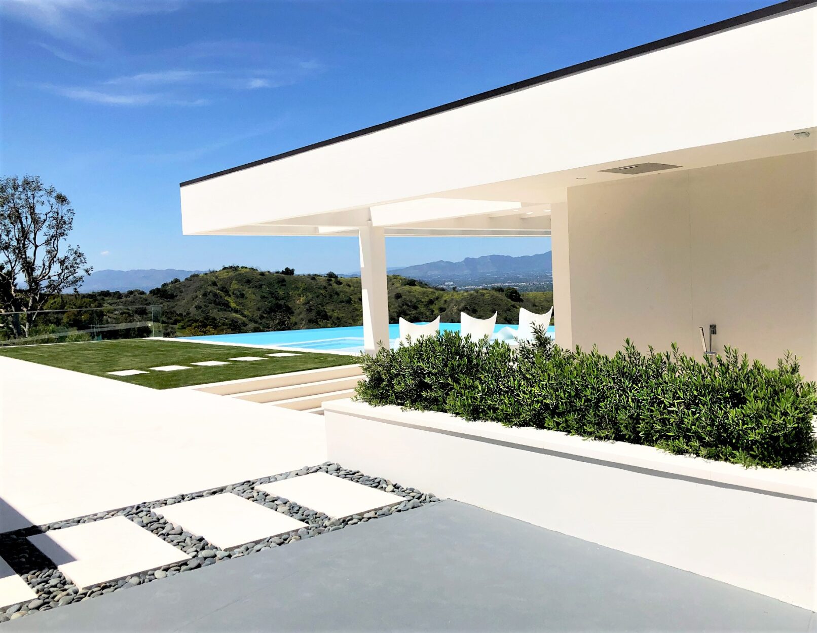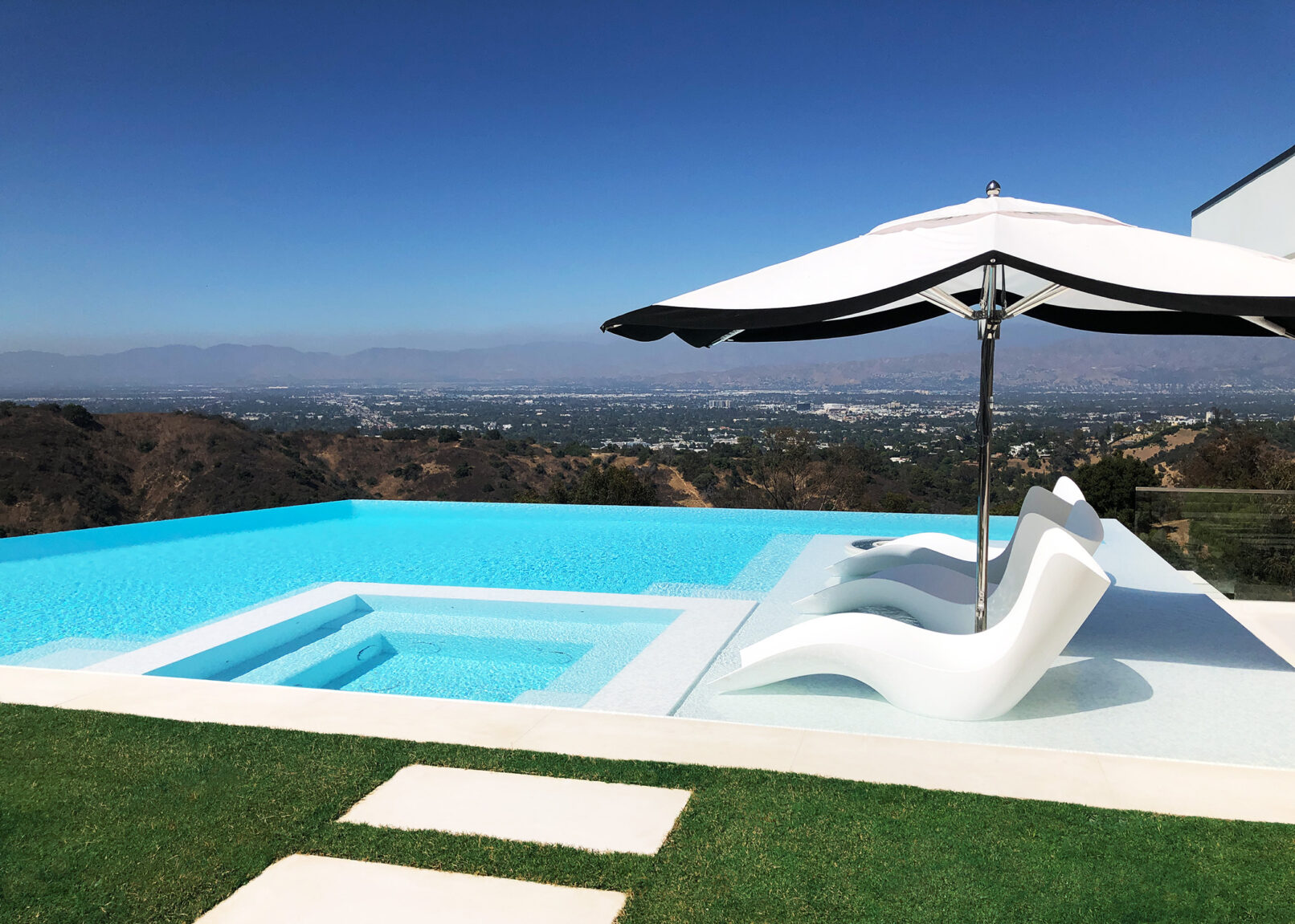 Perched above Mulholland Drive, this modern oasis overlooks the Los Angeles skyline with an infinity pool that spills into the horizon. Lemon, orange, and lime trees line the terraces, and a fire‑lit pool creates a retreat under the California sun. Step inside, and the panoramic views follow, blurring the line between indoors and outdoors.